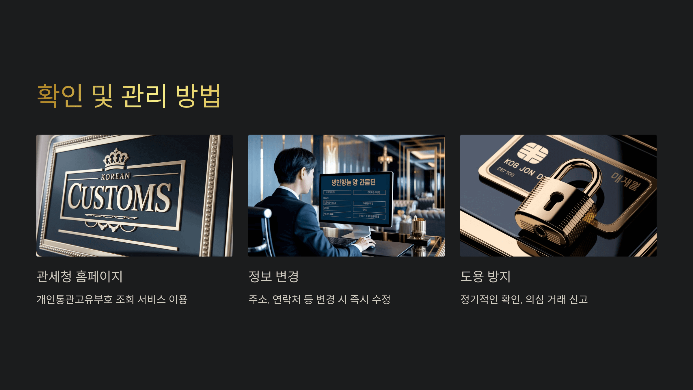 | 발급 확인 | 기존에 발급받은 번호 확인 | 관세청 유니패스 사이트 접속 → 개인통관고유부호 조회 |
