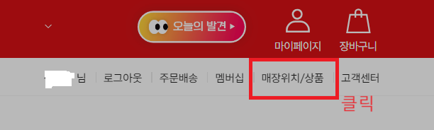 2.홈페이지 상단에 매장위치/상품 클릭합니다.