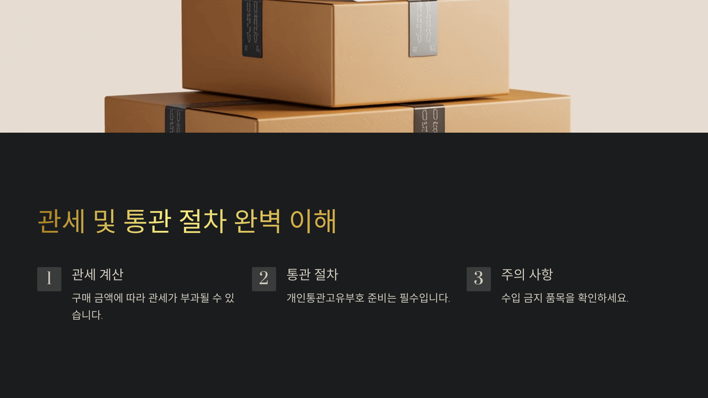 | 추가 비용 발생 | 관세, 부가세, 통관 수수료 | 세금 고지서 확인 |