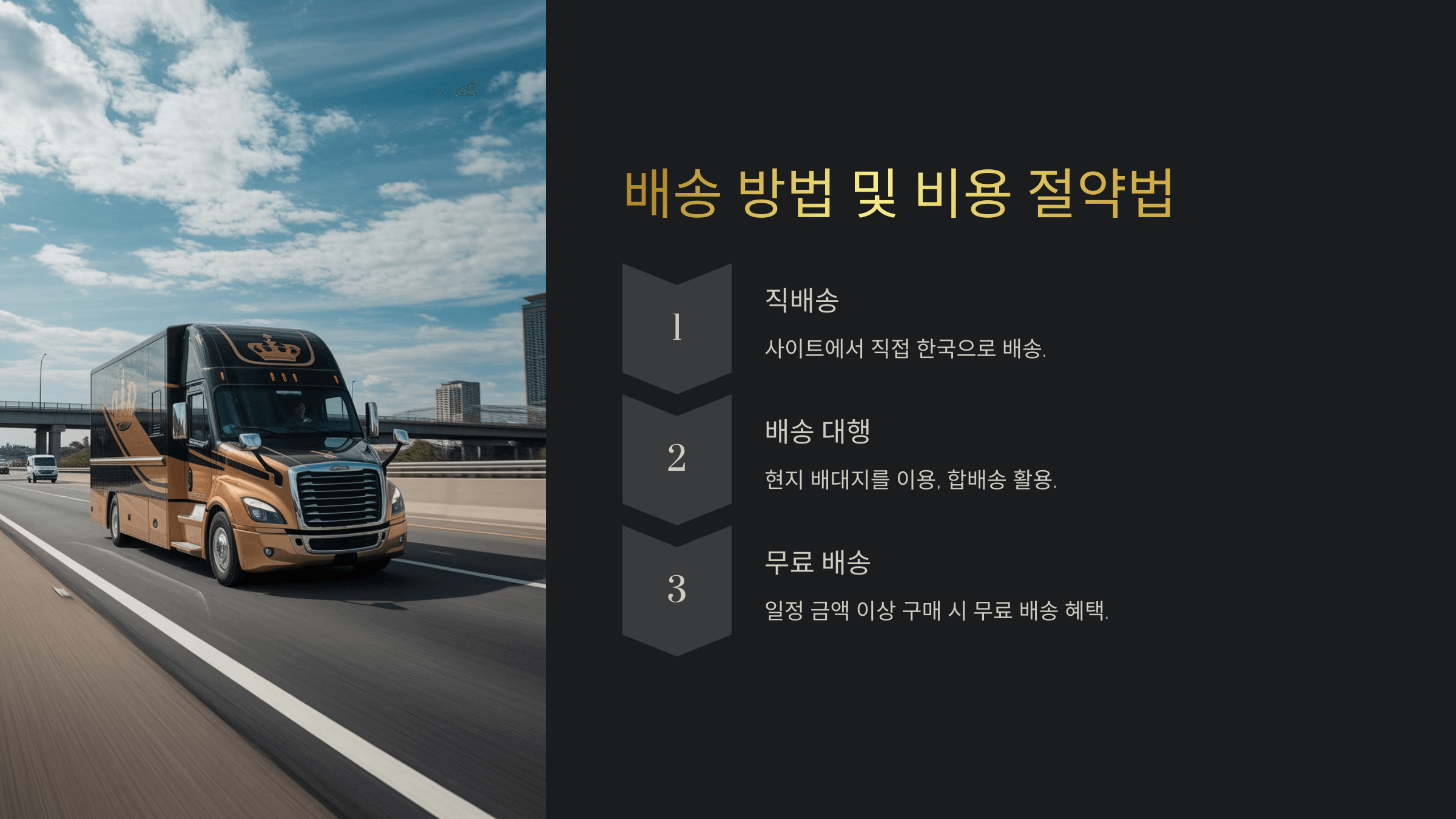 합배송 및 묶음배송 활용이에요. 여러 개의 상품을 한꺼번에 배송하면 배송비를 절약할 수 있어요. 특히 배송 대행지는 합배송 서비스를 제공해 개별 배송비보다 최대 50%까지 절약할 수 있어요. 🚚