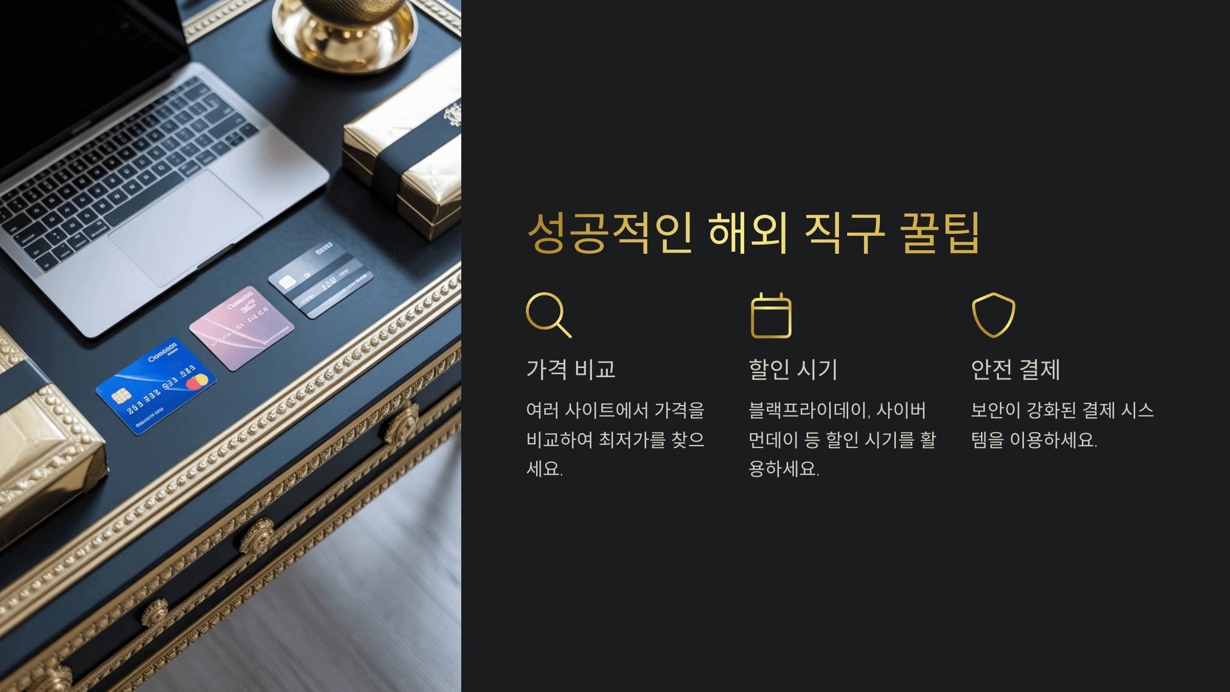 이제 각 항목을 하나씩 살펴보며 해외 직구의 고수가 되는 법을 알아볼까요? 합리적인 가격에 원하는 상품을 해외에서 직구해보세요! 🌍
